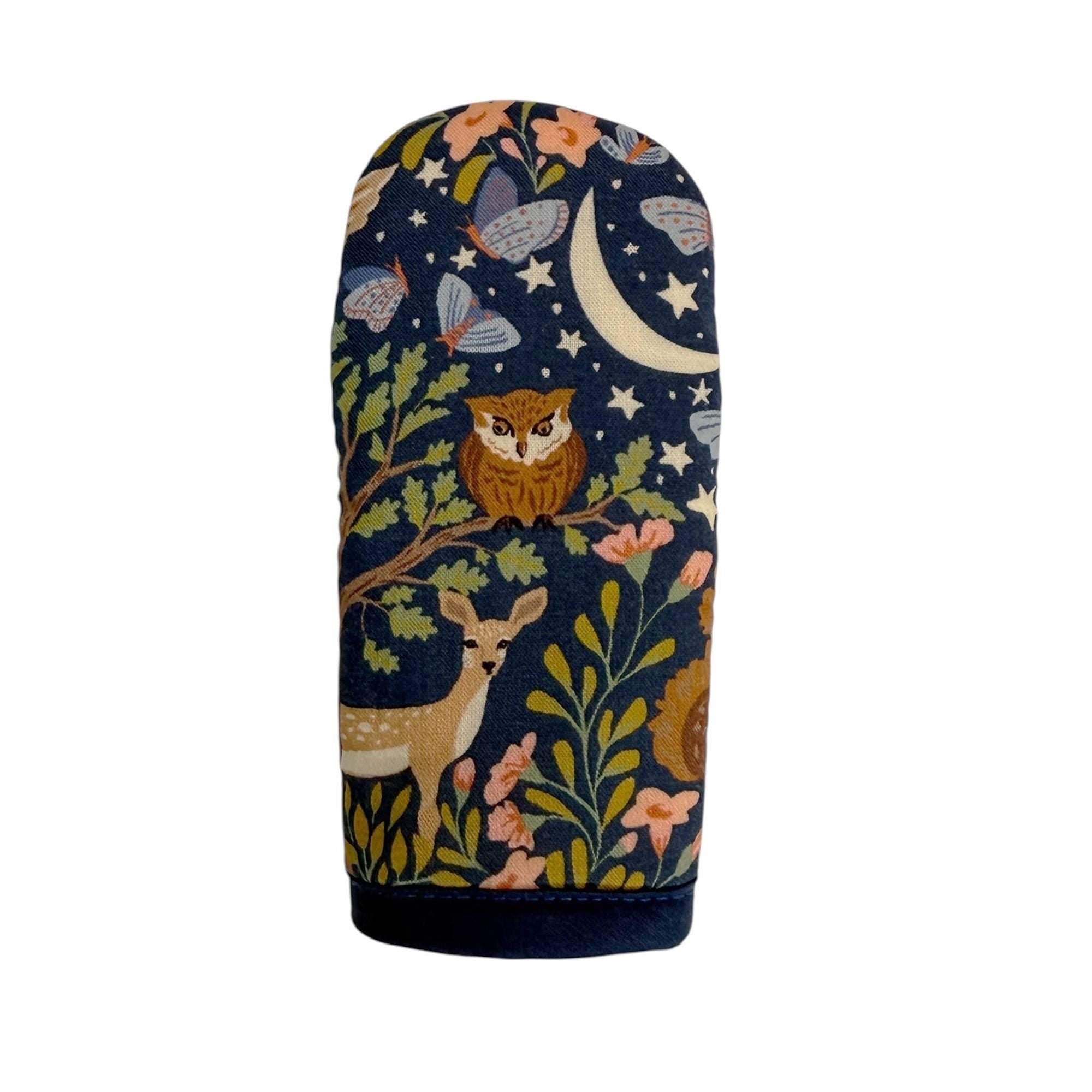 Please note that the placement of the pattern may vary. This fabric has a variety of forest animals so each mitt will be different.